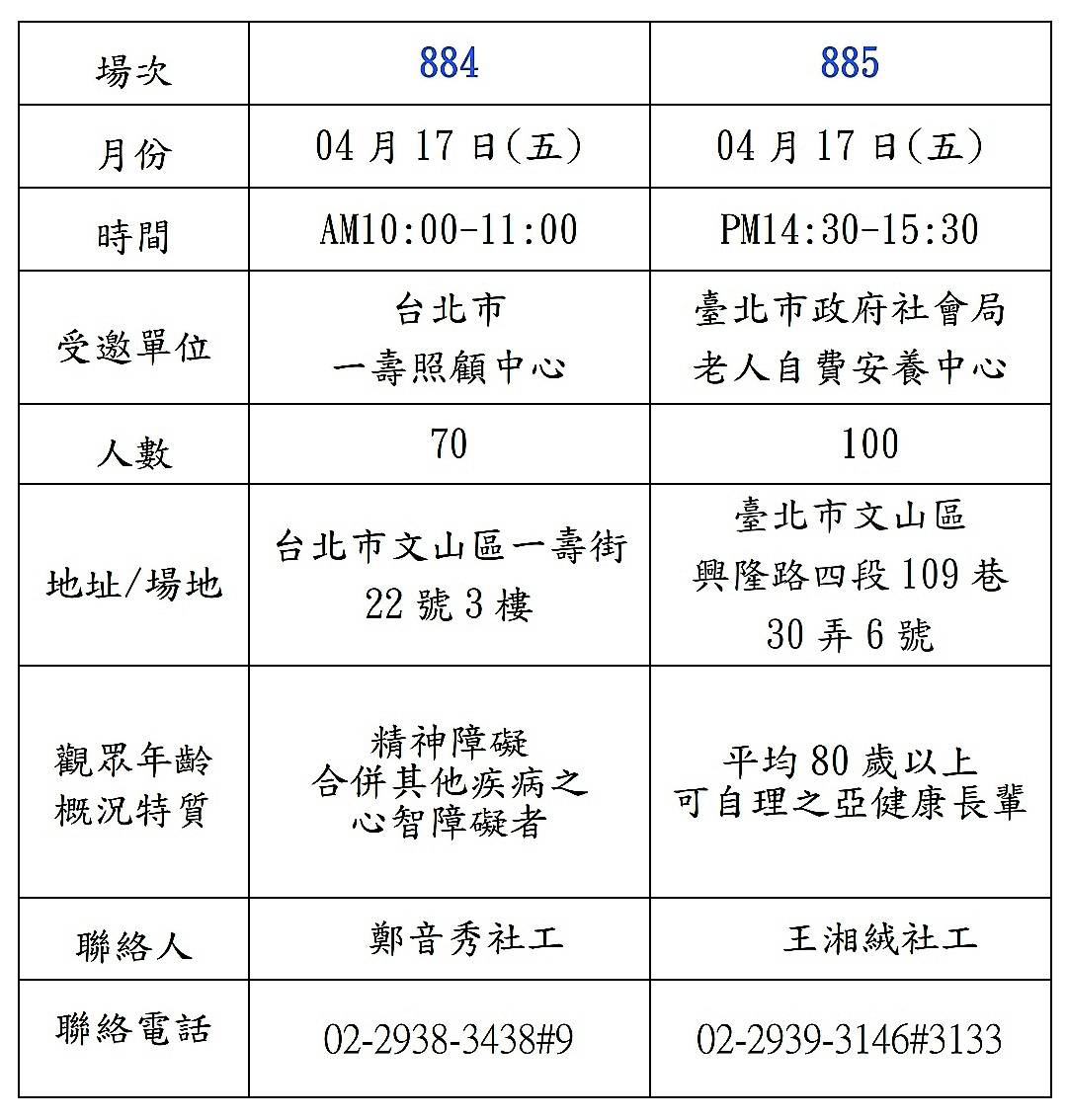 在過去二十三年來,何歡劇團一本【關懷社會,支持表演藝術】的宗旨,不計名利、不分遠近的已出動了逾九千八百人次的人員,為全臺灣逾599家大、小醫院及身心障礙單位、老人安養/養護/護理之家及國外21家單位公益演出達883場,超過203,332人次。